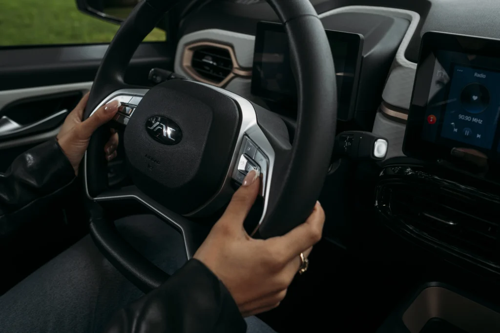 El JAC E10X está equipado con lo último en tecnología para hacer cada trayecto más práctico, entretenido y seguro. Incorpora una pantalla multimedia táctil de 10.25″ y una pantalla HD cluster digital de 6.2″, que te brindan información clara y conectividad total gracias a la compatibilidad con Apple CarPlay y Android Auto. Su sistema de asistencia a la conducción integra sensores, cámara de reversa y monitoreo de presión de llantas (TPMS), mejorando tu control y visibilidad en todo momento.
